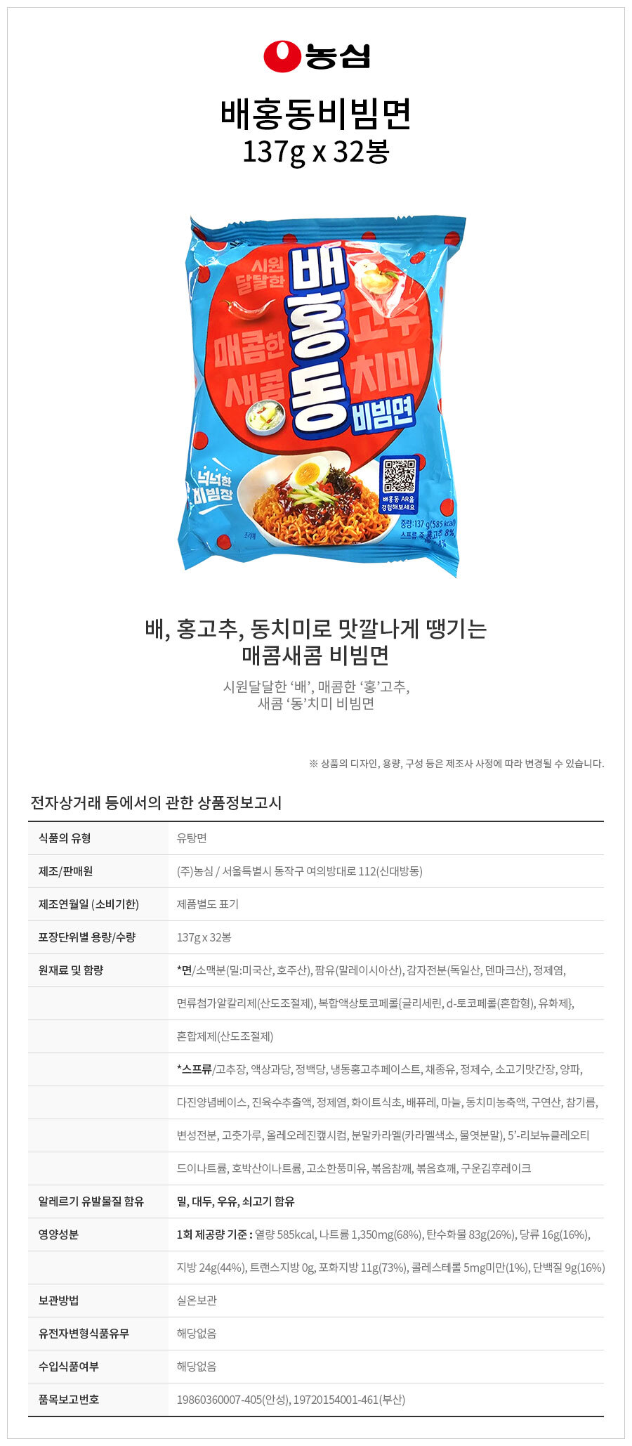 ³ó½É ¹èÈ«µ¿ ºñºö¸é 137g x 32ºÀ