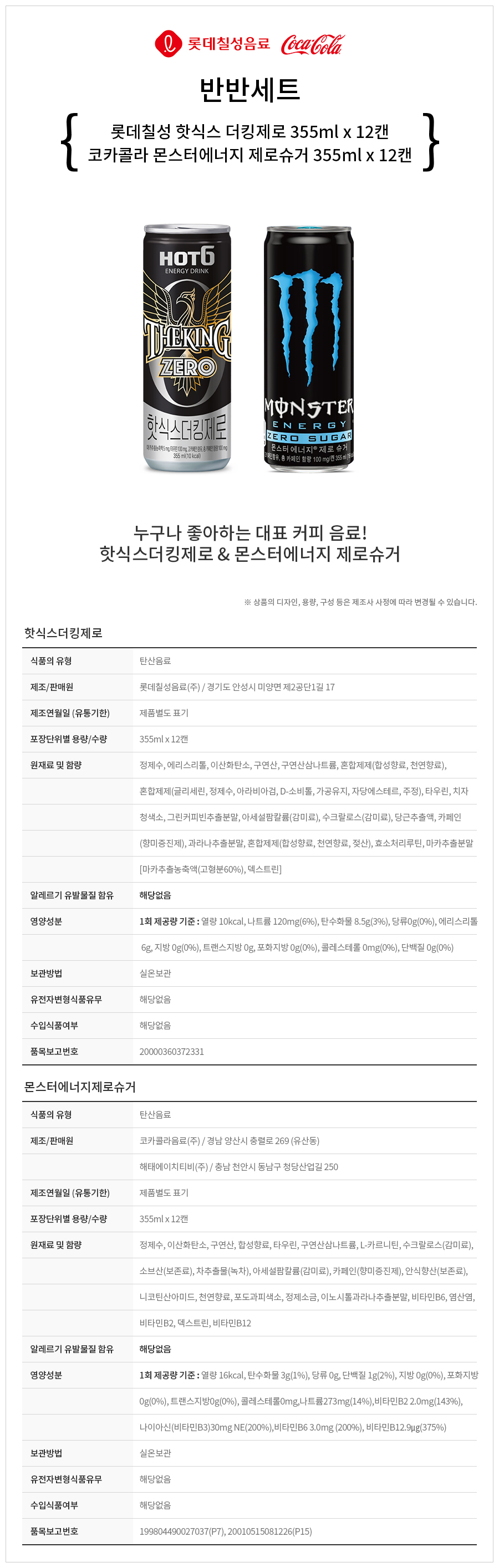 ¸ó½ºÅÍ¿¡³ÊÁö Á¦·Î ÇֽĽº Á¦·Î 355ml 2Á¾ 24ĵ ¹Ý¹Ý¼¼Æ®
