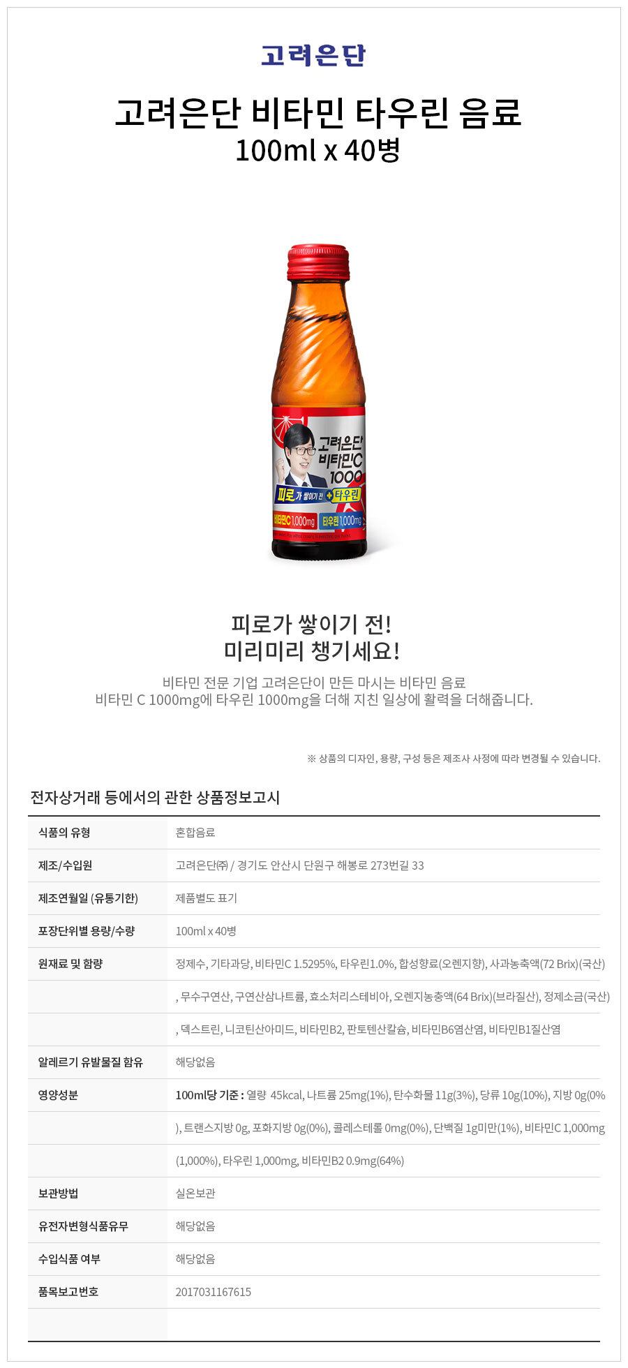 12160595 °í·ÁÀº´Ü ºñŸ¹Î Ÿ¿ì¸° À½·á 100ml x 40º´ 20800