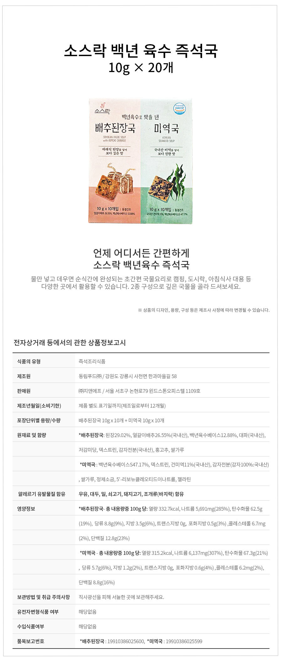 12165413 ¼Ò½º¶ô ¹é³âÀ°¼ö ¹èÃßµÈÀå±¹ ¹Ì¿ª±¹ Áï¼®±¹ 10g x 20°³ 18700