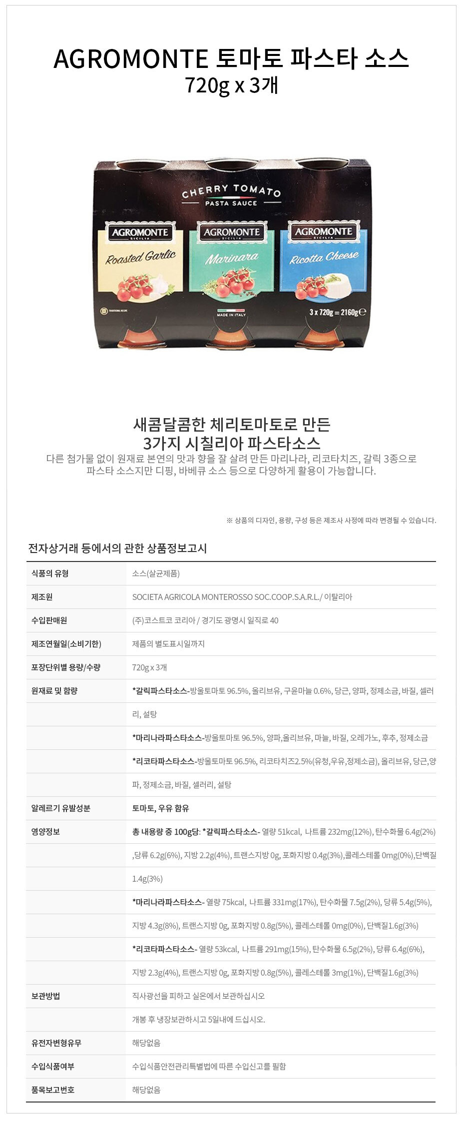 12162616 AGROMONTE Å丶Åä ÆÄ½ºÅ¸ ¼Ò½º 720g x 3°³ 21500