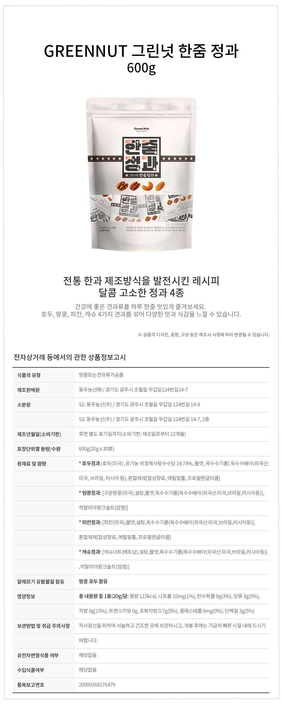 12164986 GREENNUT ±×¸°³Ó ÇÑÁÜ Á¤°ú 600g 18200